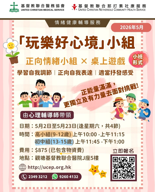 - 情緒健康輔導中心(觀塘協和街130號基督教聯合醫院J座5樓)