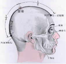 ➢ 百會:頭頂正中線前髮際後5寸處,兩耳尖直上頭頂中央交點