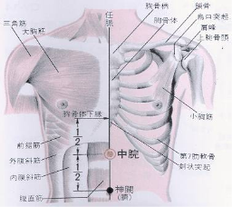 ➢ 中脘:上腹部正中線上,肚臍上4寸