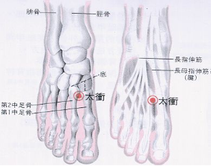 ➢ 太衝:足背第一、二趾間,跖骨間隙的後方凹陷處
