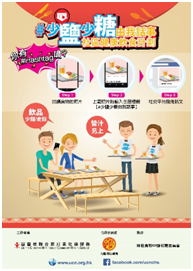 「#少鹽少糖由我話事」之「少鹽少糖我有Say」幼兒家長工作坊宣傳海報 藉此營養活動與九龍城區區內幼稚園共同攜手宣揚「在家飲食少鹽糖」及「外出飲食少鹽糖」並協助家長/教師為幼兒建立少鹽少糖的飲食習慣,以身教來教導子女建立良好的飲食習慣。